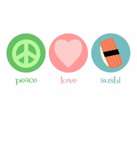 Zazzle shirt from teeboutique: Peace, Love & Sushi T-ShirtPeace, Love, Sushi - what more could you ask for??Visit teeboutique's store Join teeboutique's fan club |